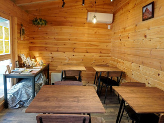 ギャラリー内は、木の板やリネンの布、レースのコースターなどを使ったディスプレーを施す。花器やピッチャーなどに桜の枝や野の花を挿して、春らしい優しい雰囲気の空間を作り上げている。同展では、皿やカップなど約100点を展示する。カップはショットグラス、ワインカップ、湯飲み、マグカップとさまざまな種類をそろえ、マグカップだけでも、縦に丸いものや横に丸いもの、浅めのものなど形を変えて展開。皿も小皿や取り皿、鉢などを大小のサイズで用意する。作品には「ほっこり鉢」「出番多し鉢」「毎日皿」「白丸くん」など、ユニークでかわいらしい作品名が付けられている。