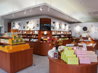 店名は、和栗の「和」と「輪」をかけ、ロゴなども広がりをイメージしてデザインした。「旗艦店らしく、和栗の魅力を発信することで、和栗文化を盛り上げていきたい。お土産物はもちろん、それ以外でも幅広く利用してもらえれば」と呼びかける。