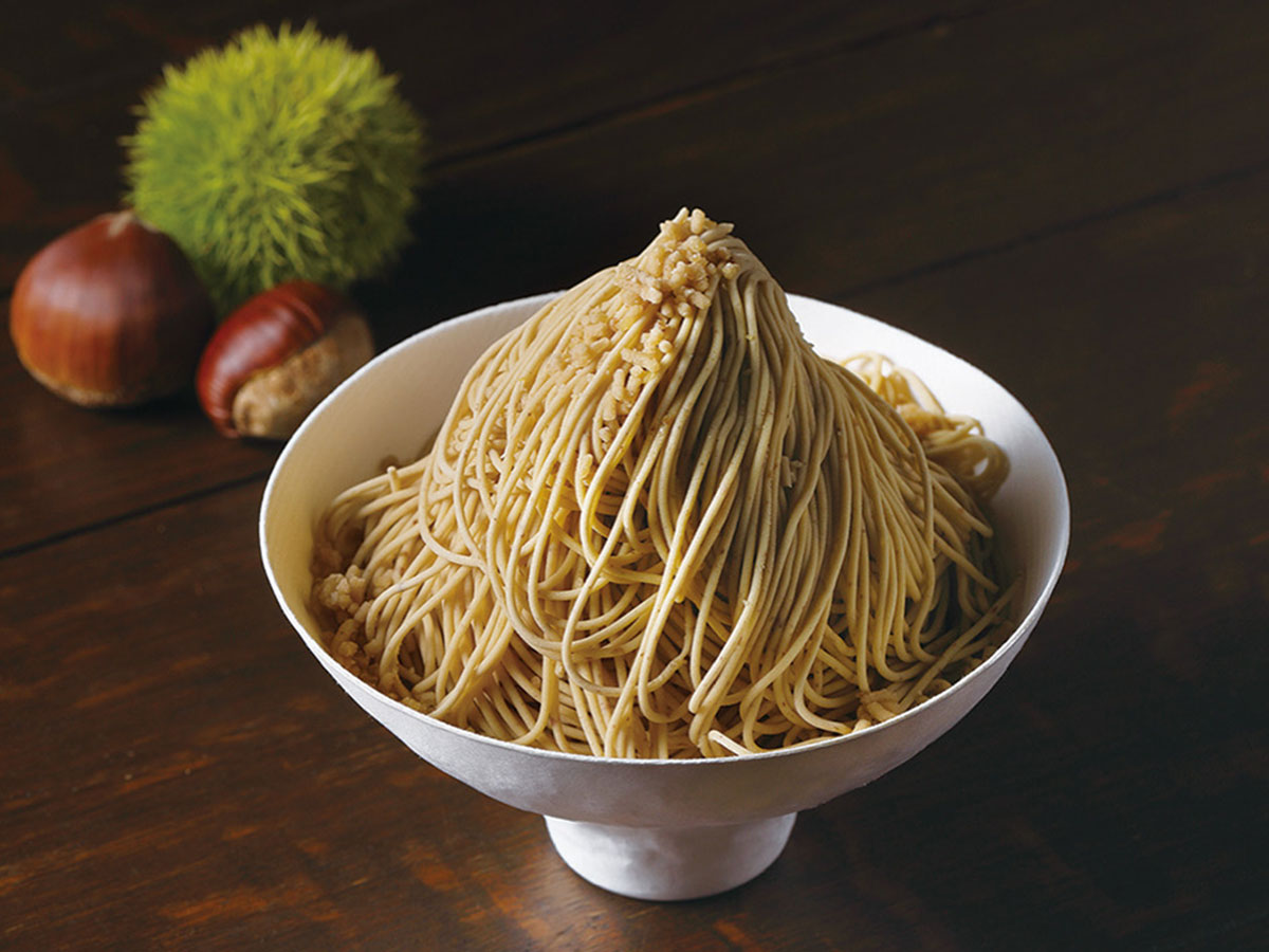 安曇野、小布施、飯島、岐阜・恵那で採れる栗を用いたスイーツを展開。店内は白を基調にすっきりとした雰囲気で、壁面のパネルでは4カ所の産地について紹介する。店舗面積は約70坪。イートインスペース10席を設ける。