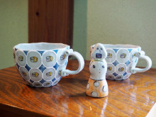 現在は茂原市で作陶し、磁土と絵の具は石川県から取り寄せている。成形は主に手びねりで、「どこか緩さ、おおらかさがある方が絵を描きやすい」とレイチェルさん。細かい絵や文字をたくさん描き込む作品もあり、「作っている時は無心になっている」と笑顔を見せる。