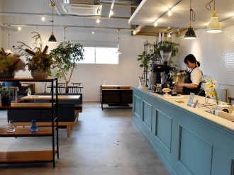 店舗面積は約15坪。席数は10席。以前、車を止めるスペースだったビルの1階部分を新たにしたスケルトン物件を、白とブラウンを基調にシンプルな内装に仕上げた。フランチャイズオーナーの田村祐助さんは「なかなか理想的な物件が見つからず探した。通り沿いという立地が良かった」と話す。