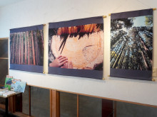 会場では、アーチ状の骨組みの模型を用意。テント作りの過程や伐採時に撮影した森の様子は、タペストリーにして紹介する。劇団員が一連の作業を体験して感じたことをせりふのように表現したものと、木の枝を組み合わせたインスタレーションや、切り株なども設置。14日・15日には、木製テントの構造体の一部を同店の2つ隣の空き地に展示し、日没後は充電した電力を使ってライトアップする。