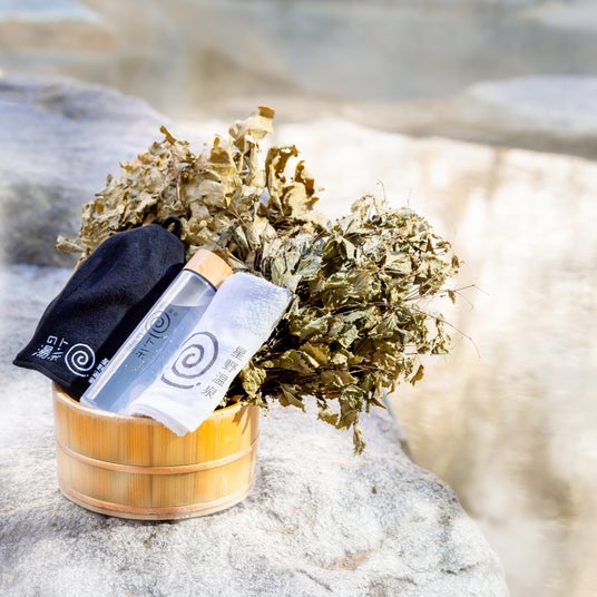 *白樺などの枝葉を束ねたウィスクを体に当てたり叩いたりする、心身を深くリラックスさせる伝統的な施術。