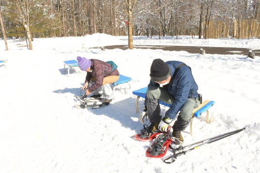 インフォメーションセンターに集合後、レンタル棟でスノーシューを受け取り、ガイドの案内でツアーを開始。スノーシューは公園で用意するため、持ち物は防寒着、長靴またはスノーブーツのみ。ふかふかの新雪を踏みしめながら、冬ならではの静けさに耳を澄ませ、動物の足跡を観察して森の魅力を満喫します。