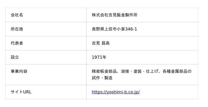 株式会社吉見鈑金製作所(本社:長野県上田市、 代表取締役:吉見 昌高)は、2026年5月16日(土)、本社工場にて体験型オープンファクトリーイベント『Yoshimi Creative Festa 2026』を開催します。