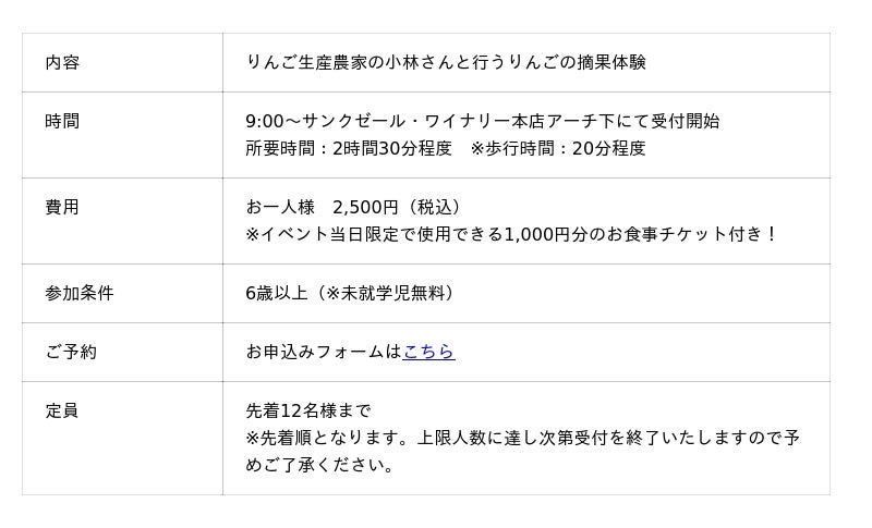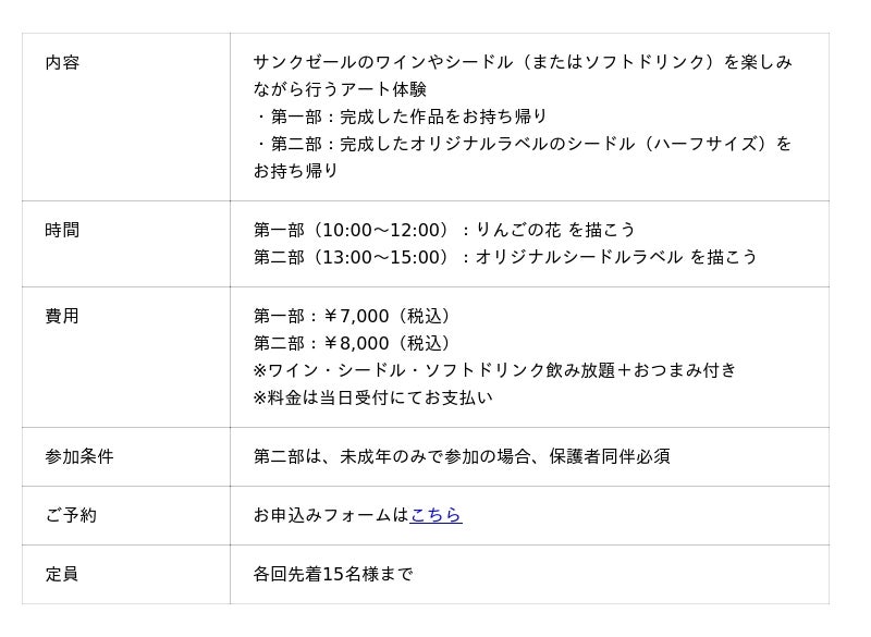 株式会社サンクゼール(本社:長野県飯綱町)は、2026年5月16日(土)に開催する、北信濃のシードル生産者7社が集結する年に一度のイベント「いいづなシードルガーデン2026」において、新たに3つの体験型コンテンツを実施いたします。