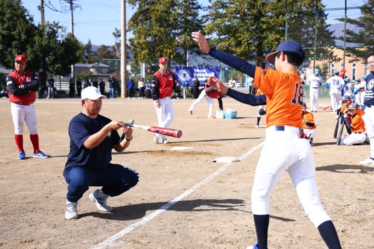 してイメージしながら実践してほしいです」と話しました。指導の最中には、松坂さんからの「ナイスバッティング!」という声掛けに自然に笑顔が広がる瞬間もあり、子どもたちにとっても、プロの技術と情熱に直接触れる貴重な体験となりました。