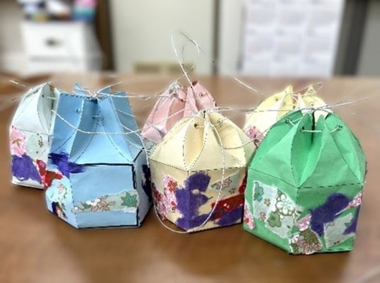 この企画では、まず保育園のビバチャイルドの子供たちが、遠く福井の和紙を使って贈り物の「箱の飾り」を作成します。次に、高齢者施設の北方デイサービスおよび大瀬木の杜の皆様が和紙キットを使って箱を丁寧に成形し、その中に子供たちへの気持ちを込めてお菓子を詰めました。