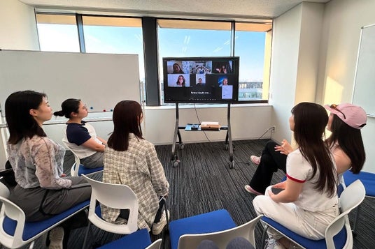 効果:ミーティングボードの導入により、機器設定の手間なくハイブリッド授業を開始でき、全員が同じ画面と視線を共有できる環境を実現。板書の共有や画面投影が容易になり、対面・オンラインを問わず一体感のある議論や国際交流が可能に。