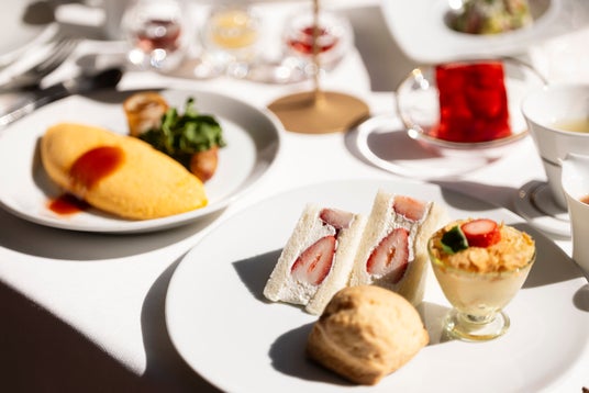 旬を迎えるいちごを主役にした贅沢な朝食を用意します。前菜の「いちごと春野菜のサラダ」や、いちごとトマトのソースを添えたふわふわな食感のオムレツなど、いちごをさまざまな料理で堪能できます。さらに、いちごのスムージーやいちごのフルーツサンドなど、いちごの魅力を存分に味わえる朝食です。