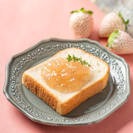 奈良県産いちごのパールホワイト 白さが際立つ希少な白いちご「パールホワイト」。桃や花を思わせる優しい香りと、すっきりとした甘さが特徴です。食パンやヨーグルトに合わせて、香りを楽しむ贅沢なひとときを。