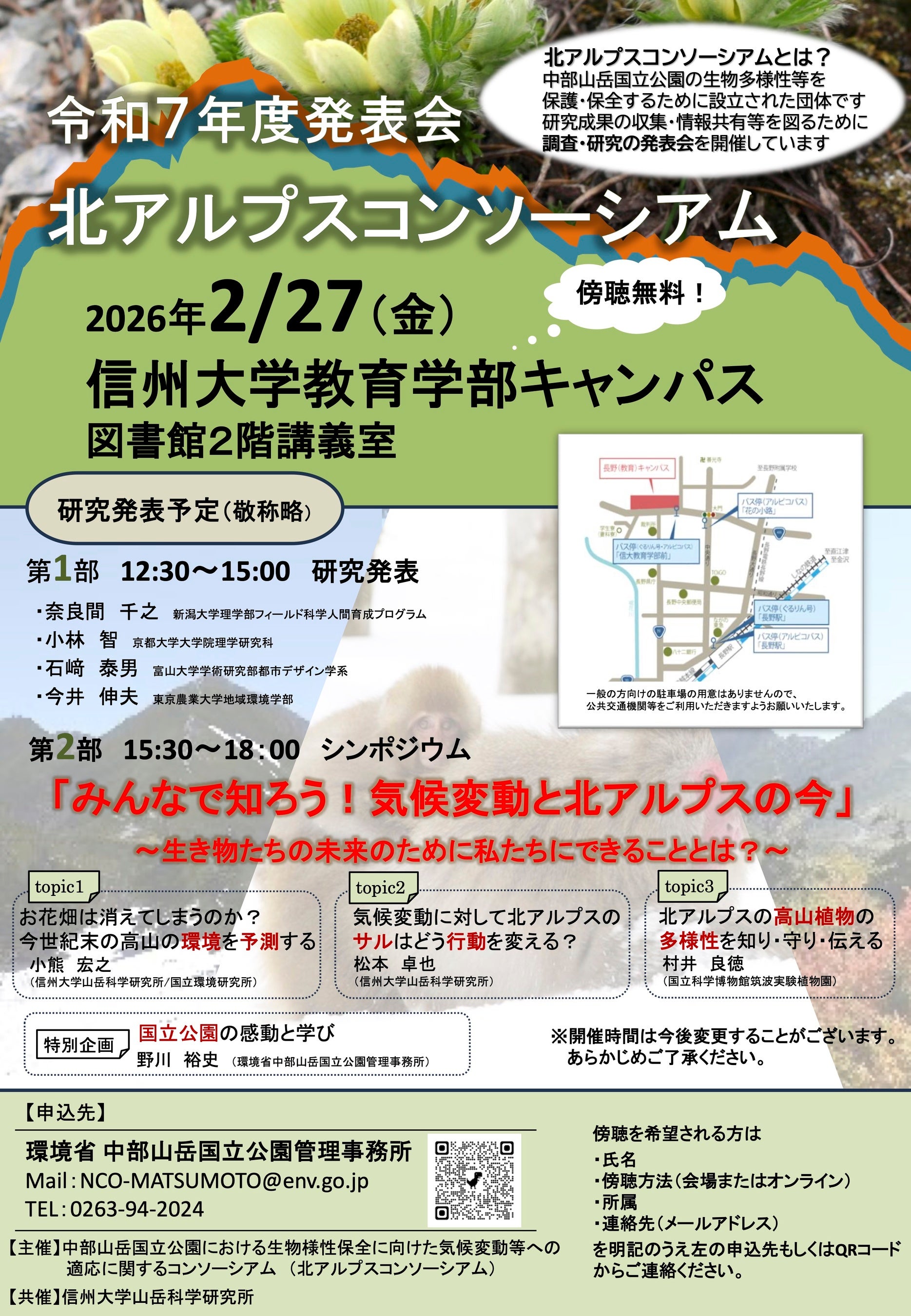 「令和7年度 北アルプスコンソーシアム」の発表会について