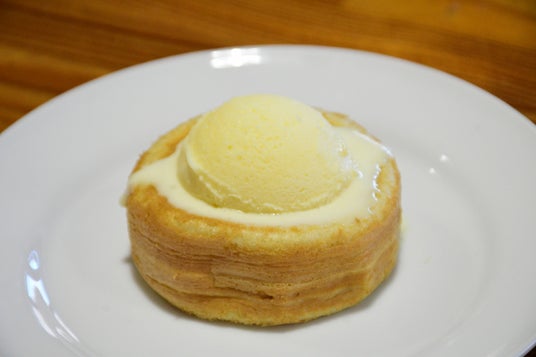 レストランでは、休憩にぴったりのカフェメニューをご用意。ベイクドチーズケーキにレアストロベリーケーキを添え、コーヒーまたは紅茶が選べる「ケーキセット」(500円)。粒あんの今川焼にバニラアイスをのせた「今川焼き」(200円)。アイスデイのひと休みに、甘いひとときをお楽しみください。