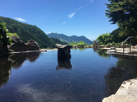 標高約800mに位置する「馬曲温泉」は、昭和57年(1982年)の源泉発見を機に、昭和59年に野天風呂が開業。以来、馬曲温泉 は地域の憩いと観光の拠点として親しまれてきました。