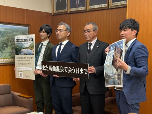 馬曲温泉株式会社(所在地:長野県木島平村、代表取締役:徳安 素一郎)は、2026年2月26(木)、木島平村役場にて木島平村長 日? 正博(ひだい まさひろ)村長を表敬訪問し、プロジェクト「#また馬曲温泉で会う日まで」の活動報告を行いました。