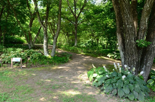 2019年の「都市緑化信州フェア」に合わせて整備したシェードガーデンは、園芸家・育種研究家の矢澤秀成氏が監修・設計しました。3月下旬には、ほかの植物に先駆けてヘレボルス・チベタヌス(Helleborus thibetanus)が可憐に開花。うつむき加減に咲く上品な姿で、来園者を魅了します。