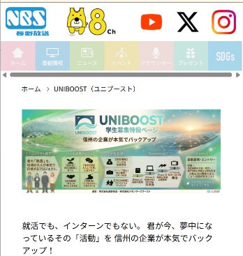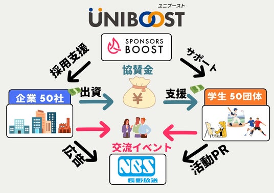 株式会社スポンサーズブースト(本社:東京都渋谷区、以下当社)は、株式会社長野放送(本社:長野県長野市、以下NBS)と連携し、長野県内の学生団体と企業をスポンサーという形でつなぐプラットフォーム「UNIBOOST」を開始します。
