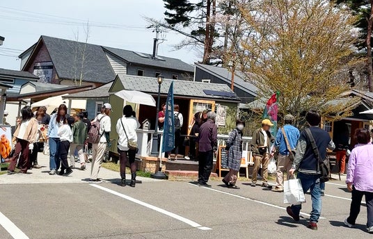 株式会社グリーンベル(本社:長野県諏訪郡富士見町、代表取締役:西澤英敏)は、2026年4月19日(日)に長野県本社展示場(長野県諏訪郡富士見町富士見11901-4)にて、第2回「小屋でマルシェ」を開催しました。当日は県内外から飲食店やハンドメイド作家など計30店舗が出店し、晴天にも恵まれ、およそ600名の来場者が訪れました。新作小屋「ナチュラルシリーズ・スタイル06」の初公開や雑貨ショップ「Garage Outfitters」の拡大リニューアルオープンも同日開催し、多くの賑わいを見せました。