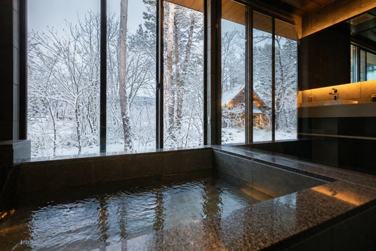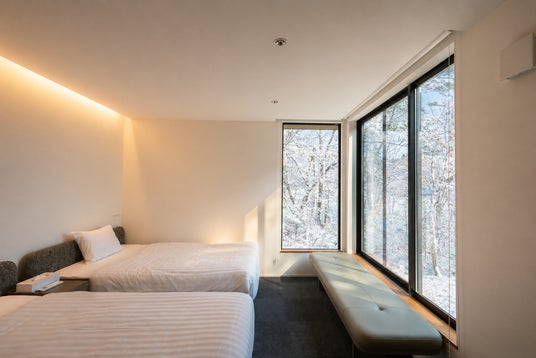 雪景色を望む家族風呂や、海外滞在者にも使い勝手のよいハイエンドなシステムキッチンなど、長期滞在に対応した設備を備えています。